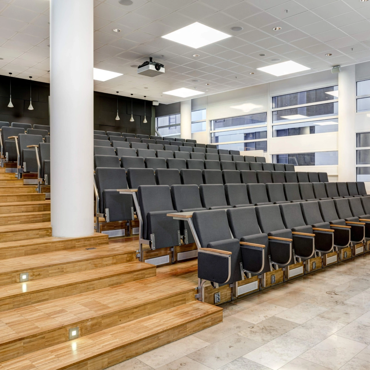 Braathen Eiendom tilbyr tre moderne auditorier med kapasitet fra 54 til 164 personer. Her kan du arrangere alt fra foredrag og produktlanseringer til heldagskonferanser og kurs. Alle auditoriene er utstyrt med profesjonelt AV-utstyr, sceneteknikk og lys, og kan tilpasses arrangørens egne behov. Komfortable sitteplasser og god akustikk gjør at deltakerne får en god opplevelse. Rett utenfor finner du romslige mingleområder med garderobe og toalettet. Her kan deltakerne møtes i pausene, ta en kaffe eller få servert lunsj eller pausemat i trivelige omgivelser. Et besøk i et av våre auditorier kan også kombineres med påfølgende mingling og/eller full middag i en av våre husrestauranter.